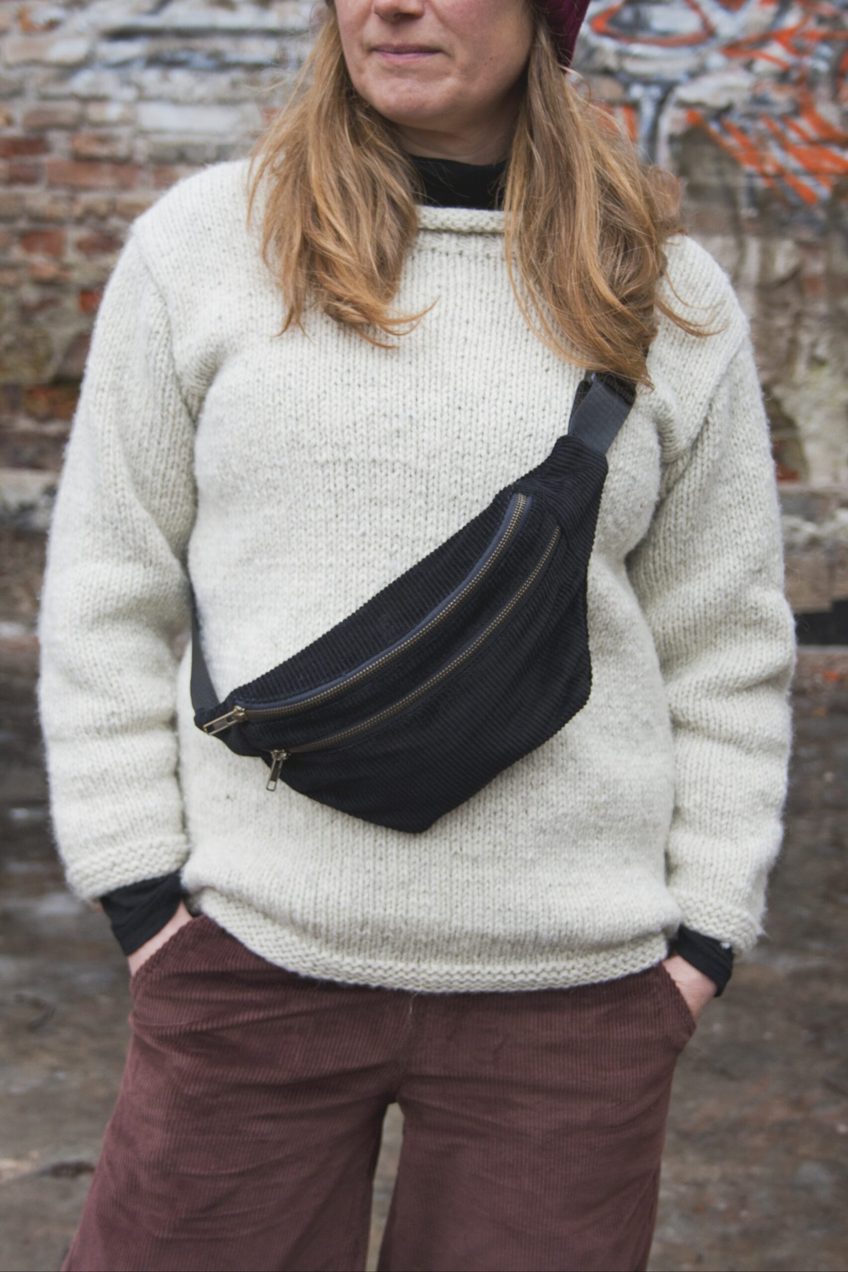 Vakosamettinen Sanu vyölaukku kulkee niin vyötäröllä kuin ”cross over body” laukkunakin.