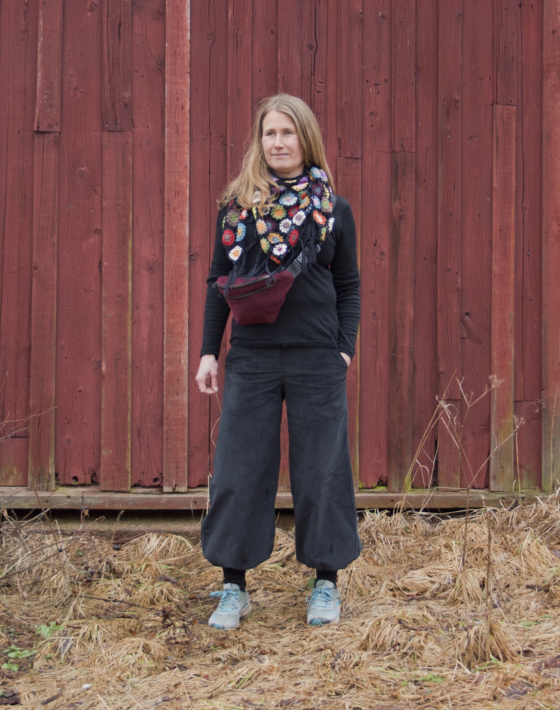 Laukut on valmistettu muun vaatetuotannon (mm. Sanu vakosamettihaalareiden) leikkuun ylijäämäpaloista.